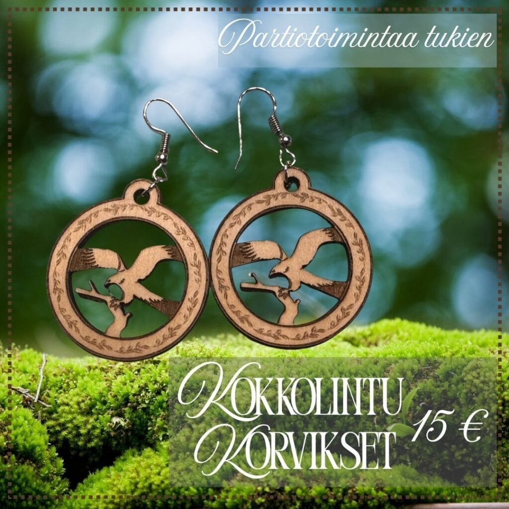 Nyt on tilattavissa myös uniikit Kokkolintu-korvikset 15 euroa/pari.